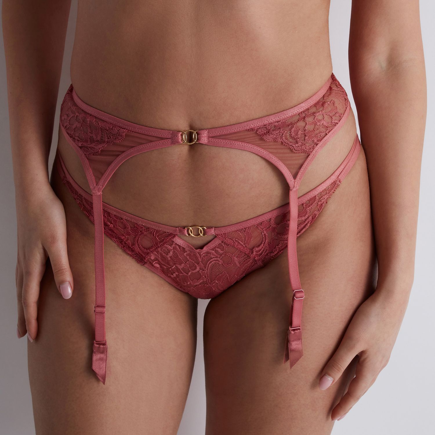 Designed to complement this exclusive line with a distinctly sensual touch, the Feeling Myself garter belt incorporates the line's codes in a streamlined and sexy form that delicately accentuates the hips. Adorned with floral lace on delicate tulle, it offers intensely seductive transparency effects.